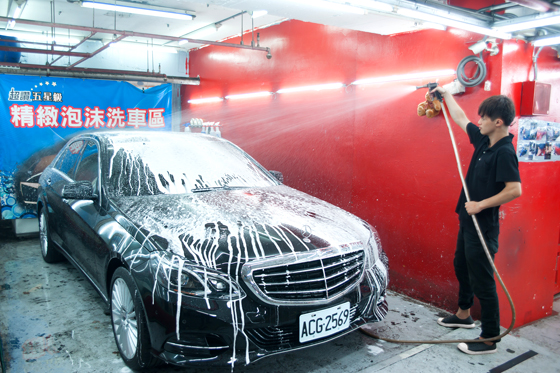 用泡沫配合高壓水柱幫您的愛車全身先沖洗,除去附著在車身上的灰塵與汙垢。