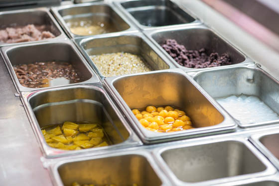 簡單清爽的店面,將配料整齊擺放於玻璃櫥窗內,一目了然又乾淨衛生,讓顧客能安心選擇喜好的滋味,坐下來慢慢品嚐清涼好滋味。