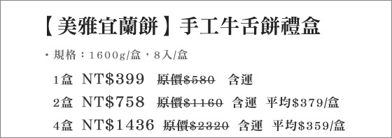 品名:【美雅宜蘭餅】手工牛舌餅禮盒