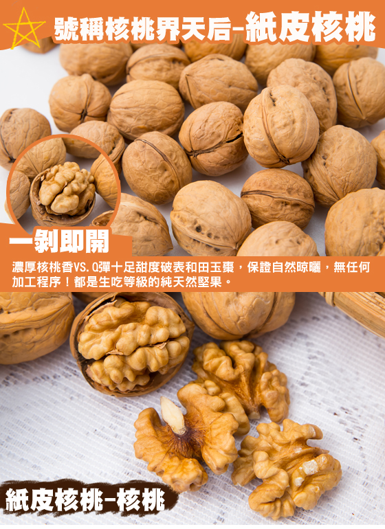●號稱核桃界天后「紙皮核桃」,皮薄仁厚