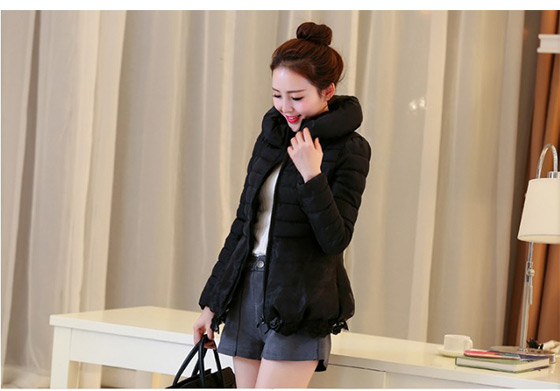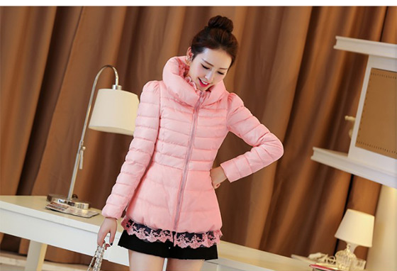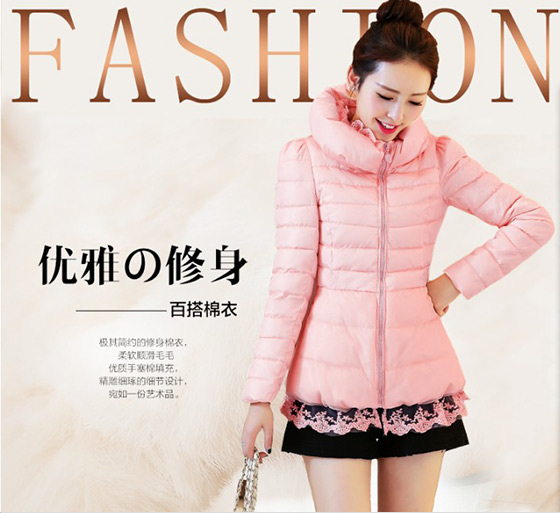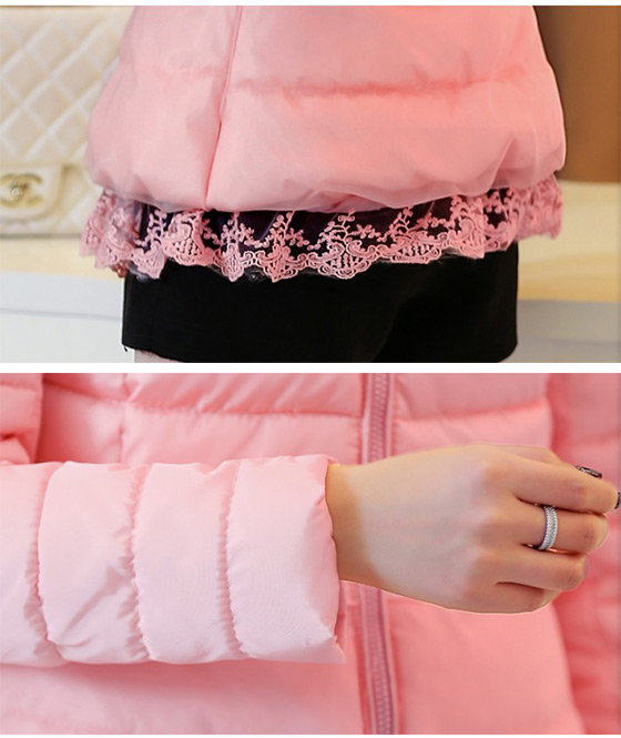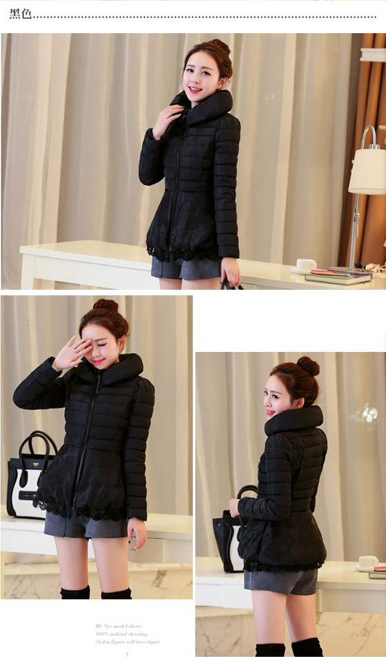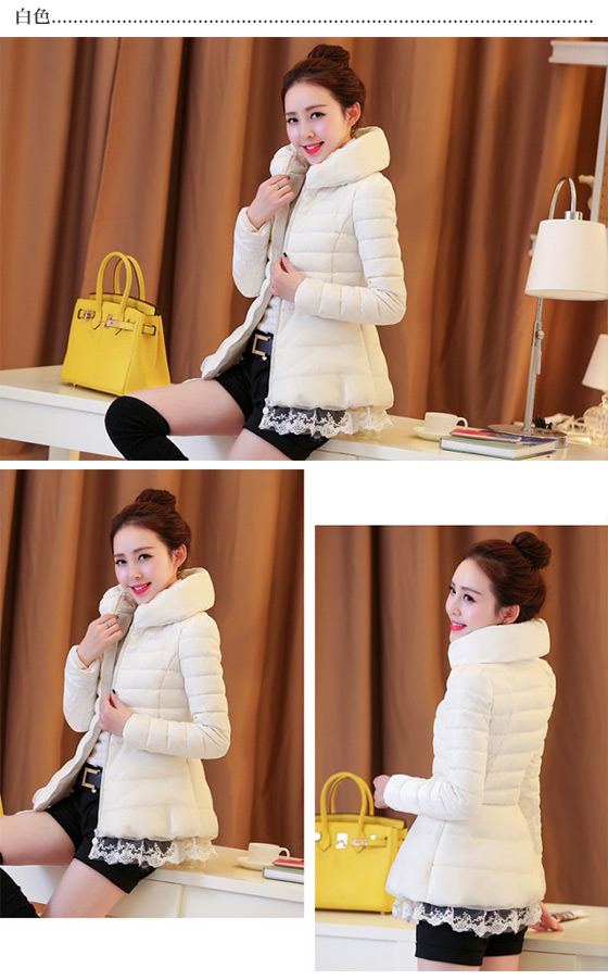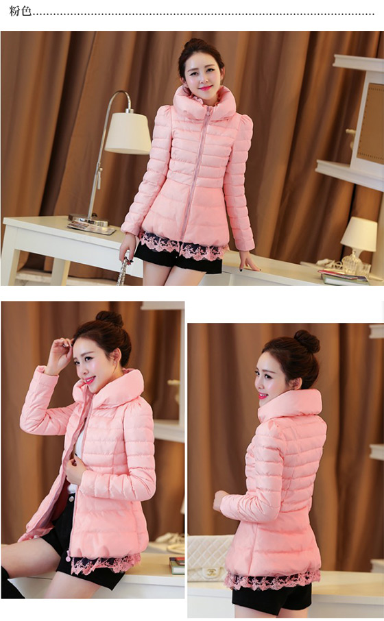 韓版修身顯瘦蕾絲邊加厚保暖短款外套"