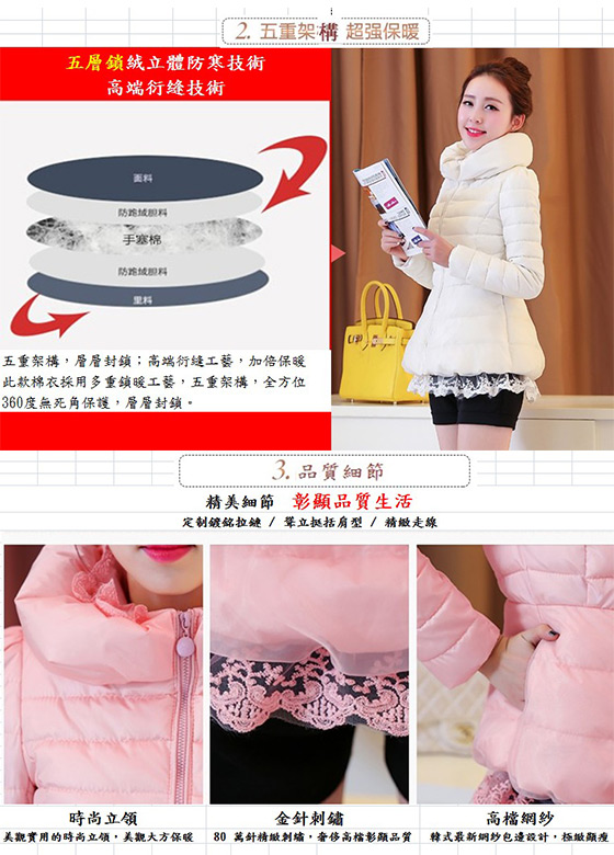 ●立體防寒技術,五層結構,高端縫製工藝,加倍保暖