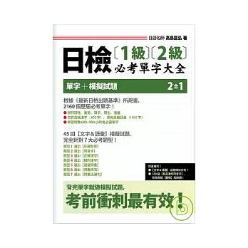 日檢【1級】【2級】必考單字大全 ~附45回【文字&語彙】模擬試題